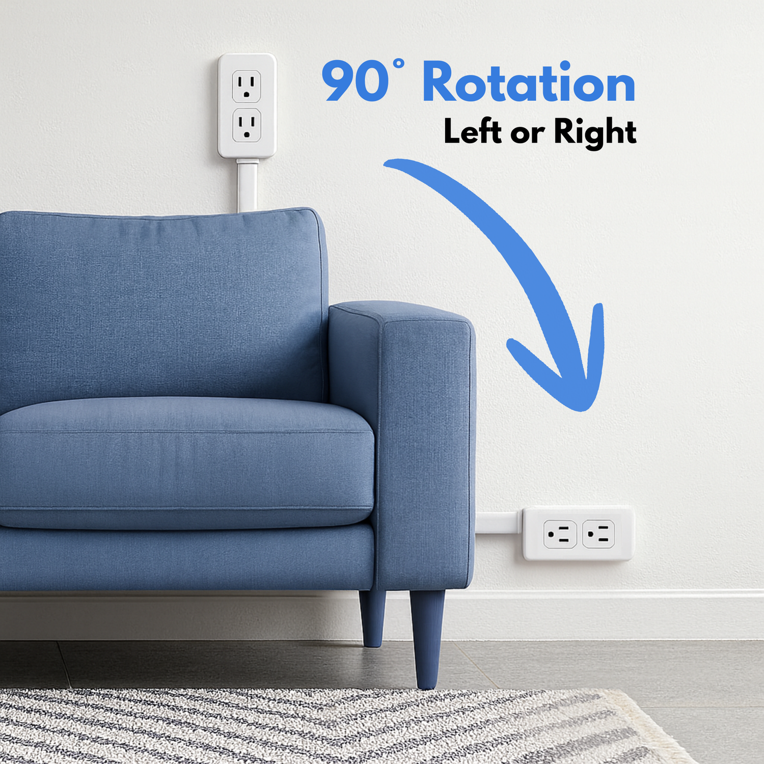Whichever side your outlet is on OutletArm™ has you covered. With full 90° rotation left or right we can help you reach any outlet you need.